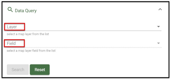 From the Layer drop down list, select a layer to query. Next, make a selection from the Field drop down list to specify the field to query: