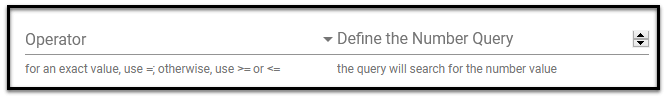 If a numeric field was chosen, areas to define an Operator and the Number Query will appear.