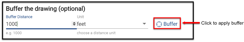 After the sketch has been made, apply a buffer, if needed: Set the buffer distance and units, and then click the Buffer button.