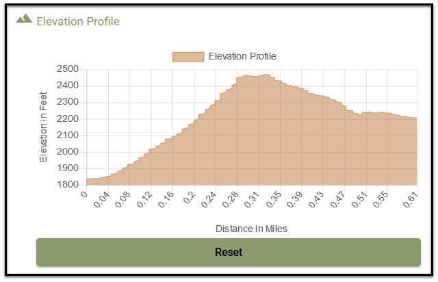 The Elevation Profile tool generates an elevation profile graph along a user specified line. The tool has two components: the button to draw the profile line and the area where the profile graph will appear. To generate a profile graph, click the Elevation Profile button in the Map Tools area: