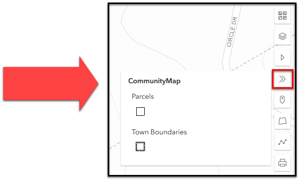 Clicking the Legend button provides a dynamic list of visible layers and their symbology, as shown in the map. To close the legend, click on the collapse button.