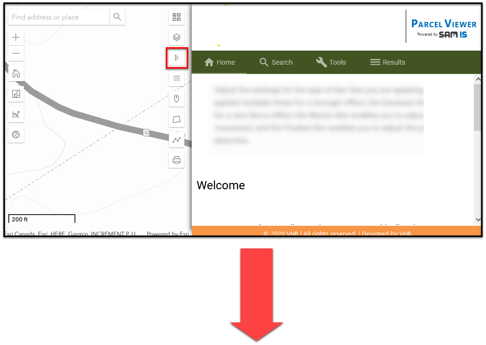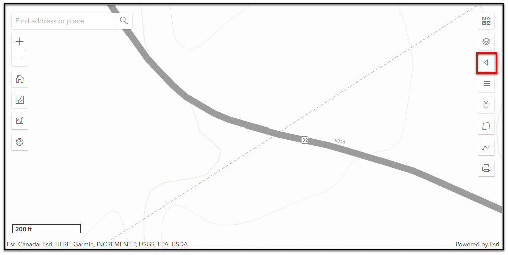 The Hide/Show Panel button removes the tools panel to provide a wider and unobstructed view of the map. Access to tools from the Tools Panel is not provided until the button is clicked again to bring the Tools panel back into view.