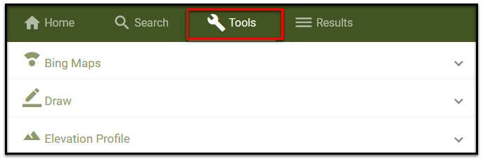 Click on the Tools tab to access the Bing Maps, Draw and Elevation Profile tools.
